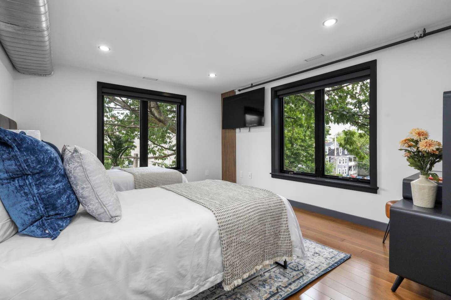 Stylishly renovated luxury loft PENTHOUSE! - Free parking for 4 vehicles + EV charger - BONUS parking before сheck-in/after check-out allowed - Park and open-air pool right outside your windows - A/C units in every room - TVs in each bedroom - 2 living rooms - Walkable location near T station and major attractions, restaurants, and shops This bright and stylish apartment is perfect for families, friend groups, and business travelers alike. Ideally located just a 10-min walk to the T.