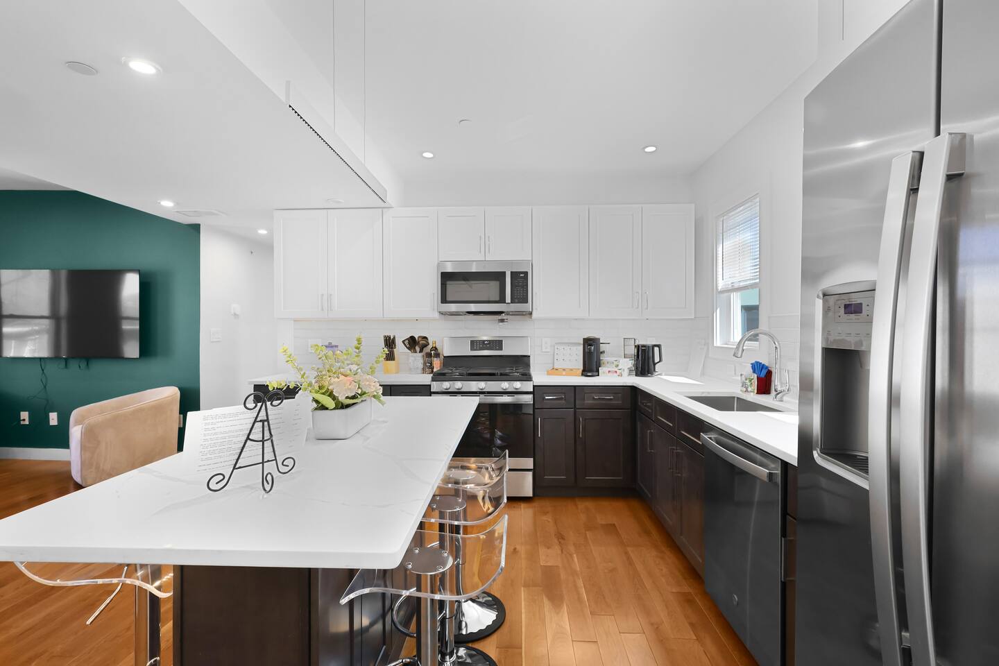 Our fully renovated 3-story home accommodates up to 24 guests, featuring 9 bedrooms, 6 full bathrooms, and a full kitchen on each floor! ✅ Free driveway parking for six vehicles + parking permits - BONUS parking before сheck-in/after check-out is available ✅ 8-minute walk to the T ✅ Family, Baby & Pet friendly ✅ EV charger ✅ FREE luggage STORAGE in case of an early check-in/late check-out ✅ Close to Kendall Square, MIT, Harvard, TD Garden, and downtown Boston